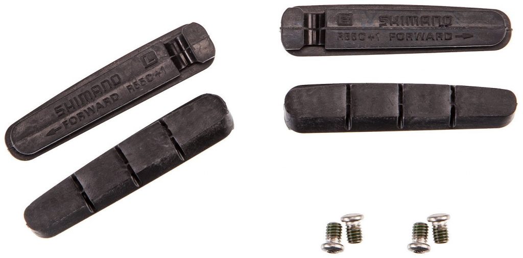 • Shimano R55C+1: Mescola morbida per prestazioni di frenata superiori in condizioni di asciutto. Più sottili di 1mm rispetto agli altri modelli. Aumento dell’abrasione in condizioni di bagnato. Ridotta abrasione della pista frenante.